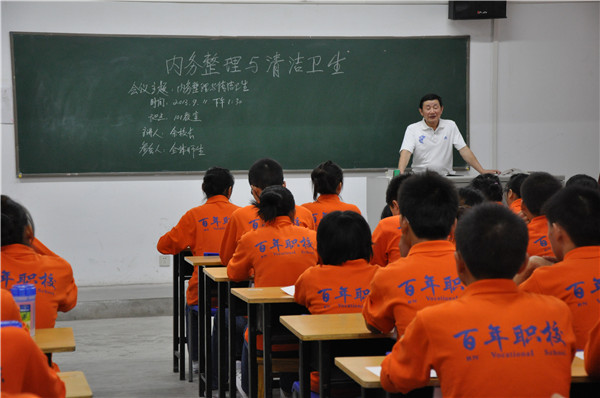 9月11日下午,余校長在團(tuán)校大教室給新生做內(nèi)務(wù)整理和清潔衛(wèi)生培訓(xùn)。開始上課之前,余校長強(qiáng)調(diào)了在百年職校怎樣記筆記,讓同學(xué)們養(yǎng)成好的學(xué)習(xí)習(xí)慣。接著,余校長與同學(xué)們講內(nèi)務(wù)整理和清潔衛(wèi)生的作用和意義、內(nèi)務(wù)整理具體要求和清潔衛(wèi)生具體要求,同學(xué)們認(rèn)真記著筆記,對百年職校的衛(wèi)生工作有了初步認(rèn)識。