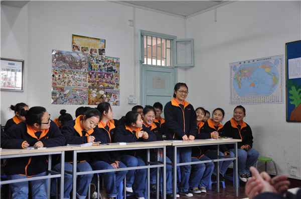 服務一班討論的很激烈。首先由2012級文巧玲師姐講述在校一年的學習、生活經歷,接著同學們踴躍提問,都是關于如何管理班級,怎樣養(yǎng)成良好行為習慣的問題。師哥師姐一一做出了回答,并分享了他們的感悟。