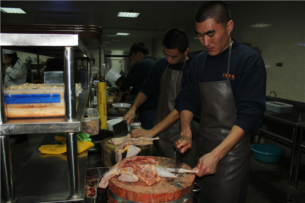 我們三十多個同學,其中包括我在內的十多名同學,在后廚給那些師傅幫忙其他二十名同學在大廳幫忙迎送客人,端茶倒水打掃衛(wèi)生等,這只是寫簡簡單單瑣碎的小事,但卻通過他們體現(xiàn)出了我們的踏實在后廚待了一天,我們那十多名同學收獲了很多,我們在廚房里幫著師傅摘菜,每一步都要按著師傅的要求去做,刀工比較好的幾個同學幫助師傅切菜切肉等,還有三名同學負責做面點,因為我們做的這些東西都是要給那些來參加青聯(lián)常委三次擴大會議的來賓吃的,所以要特別細心的做,我們做出的菜品都是非常精美可口的。