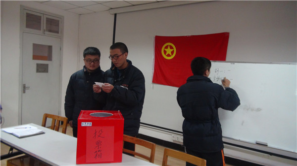 2013年12月11日下午,南京百年職校召開了團總支成立大會,會議主持彭琦老師,與會人員:彭曉校長、李云鳳老師、葛黎琴師姐及全校39名團員(包括邱三鑫師哥)。這次開會的主要目的,選舉團書記和副書記各1位、委員3名。首次投票共有11位候選人,經過一輪又一輪的投票,最終選舉結果:書記由邱三鑫師哥擔任,副書記由烹飪班的王世隆同學擔任,3位委員分別是方慶、胡一、樊娜。