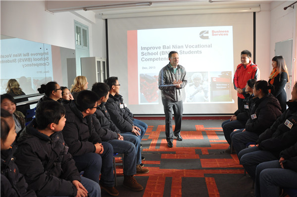 周五上午,康明斯公司的兩位領(lǐng)導(dǎo)Jim和Suzanne到訪我校,首先參觀了學(xué)校的環(huán)境,他們贊不絕口!后來Jim和Suzanne還跟我們互動和交流。剛一進(jìn)門,Jim就和我們很熱情的打招呼,他跟我們分享他的家庭,他有個幸福的家庭。后來他給我們講他眼中的美國和中國的區(qū)別。Jim分享完,就輪到Suzanne了,Suzanne分享了她來到學(xué)校以后的感受,她說,學(xué)校雖小,但是很干凈整潔,同學(xué)們很可愛,整個氛圍很溫馨。互動到了最后,同學(xué)們紛紛向他們提問,他們也一一做了回答。他們風(fēng)趣幽默、和藹可親給我們留下了深刻印象。