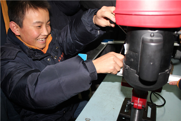 老師首先給我們講了激光鉆床的使用方法和技巧,還為我們示范了一遍,在劉老師的一番講解之后,同學(xué)們都踴躍的試著操作。在確定好需要打眼的地方之后,便啟動開關(guān)開始打眼。雖然看著老師打眼很簡單,但是到了我們操作的時候,我才知道原來給相框打眼也是一門技術(shù)活!