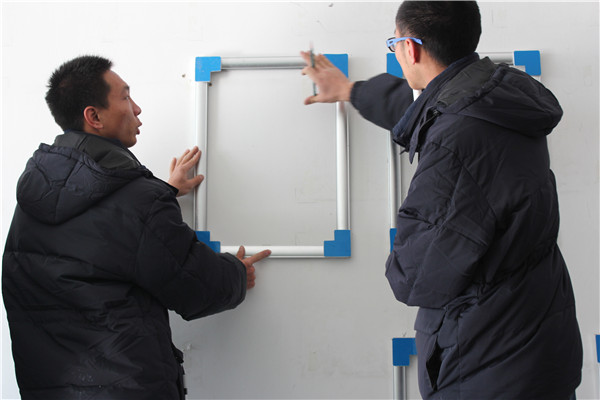 同學(xué)們的表現(xiàn)都很積極,有的同學(xué)拿插線板、有的提著沖擊鉆,有的拿螺栓、螺絲還有螺絲刀,剩下的同學(xué)這則是抬著梯子,拿著尺子和相框。在一切工具都拿完整之后,同學(xué)們就帶隊(duì)走向計(jì)算機(jī)工程部實(shí)操樓了,到了之后同學(xué)們小心翼翼地把相框放在地上。老師開始設(shè)計(jì)如何把相框整齊的安裝在墻上,進(jìn)過老師的一番設(shè)計(jì),最終確定了把相框分成兩排安裝在墻上。做好準(zhǔn)備工作之后同學(xué)們就開始在墻上打眼安裝相框了。首先是把相框放在墻上,由站在地上的同學(xué)看墻上的相框是否斜了,如果斜了那就調(diào)整,直到相框不斜為止。這時再用鉛筆在墻上畫個點(diǎn),再用沖擊鉆在黑點(diǎn)上打眼,打好之后按上膨脹螺栓擰上螺絲,一個相框就大功告成了!