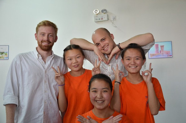 2014年6月,百年職校長期志愿者朱方剛與來自美國的Noah、Charles利用假期為學(xué)校提供志愿服務(wù),三人先在銀川學(xué)校與學(xué)生同吃同住開展為期10天的英語教學(xué)活動,后在北京學(xué)校承擔(dān)大量的翻譯工作。