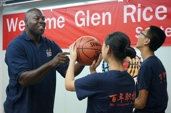 格倫·萊斯曾在1997年參加“全明星賽”,擊敗喬丹等眾多高手獲得“最有價(jià)值球員”的稱號(hào)。當(dāng)他步入百年愛心大講堂時(shí),受到學(xué)生的熱烈歡迎。格倫·萊斯還現(xiàn)場傳授“秘籍”,教學(xué)生如何傳守攻防,幾位學(xué)生還學(xué)得有模有樣,得到格倫·萊斯的稱贊表揚(yáng)。