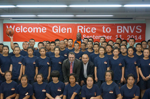 2014年9月11日下午, 美國大使館文化處一行及NBA球星格倫·萊斯(Glen Rice)到訪北京百年職校,參觀校園并了解百年職校的辦學(xué)模式和教育理念。