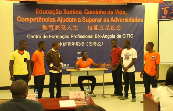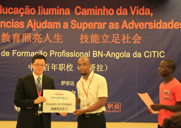 中信集團總經(jīng)理助理、中信建設洪波董事長在講話中以中國偏遠山區(qū)學生學習環(huán)境現(xiàn)狀為例,鼓勵中信安哥拉百年職校學員要珍惜學習機會,懂得感恩社會,肩負起建設國家的使命。