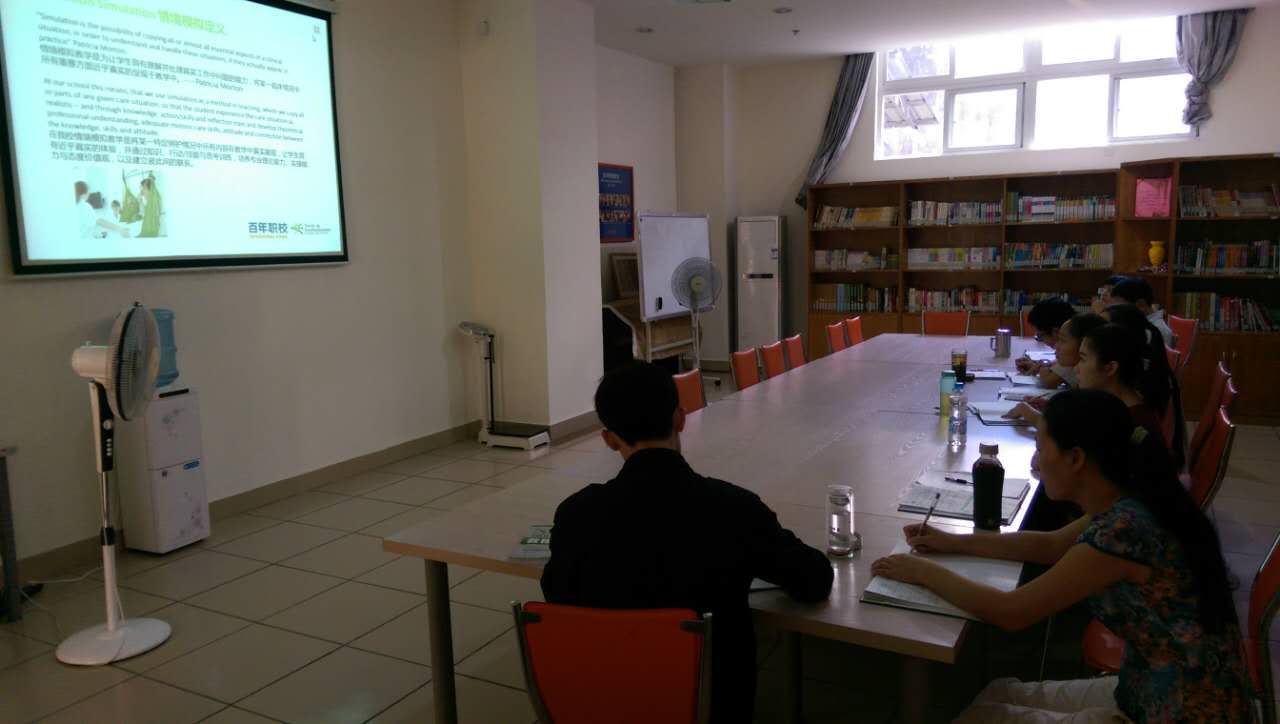 2015年11月24日,丹麥教育專家、社會健康護(hù)理學(xué)院院長漢娜博士到百年職校與各地學(xué)校教師通過網(wǎng)絡(luò)進(jìn)行了教育學(xué)與情景教學(xué)方法的研討。漢娜博士作為心理學(xué)和教育學(xué)的研究者和教學(xué)實踐者從教學(xué)的目標(biāo)、內(nèi)容、方法和評估四個環(huán)節(jié)出發(fā),對設(shè)定教學(xué)目標(biāo),教學(xué)的專業(yè)性和相關(guān)性,情景教學(xué)的方法,教師與學(xué)生的關(guān)系等問題進(jìn)行了論述。各校教學(xué)團(tuán)隊展開熱烈討論,大家認(rèn)為這是一次教學(xué)方法的營養(yǎng)大餐。