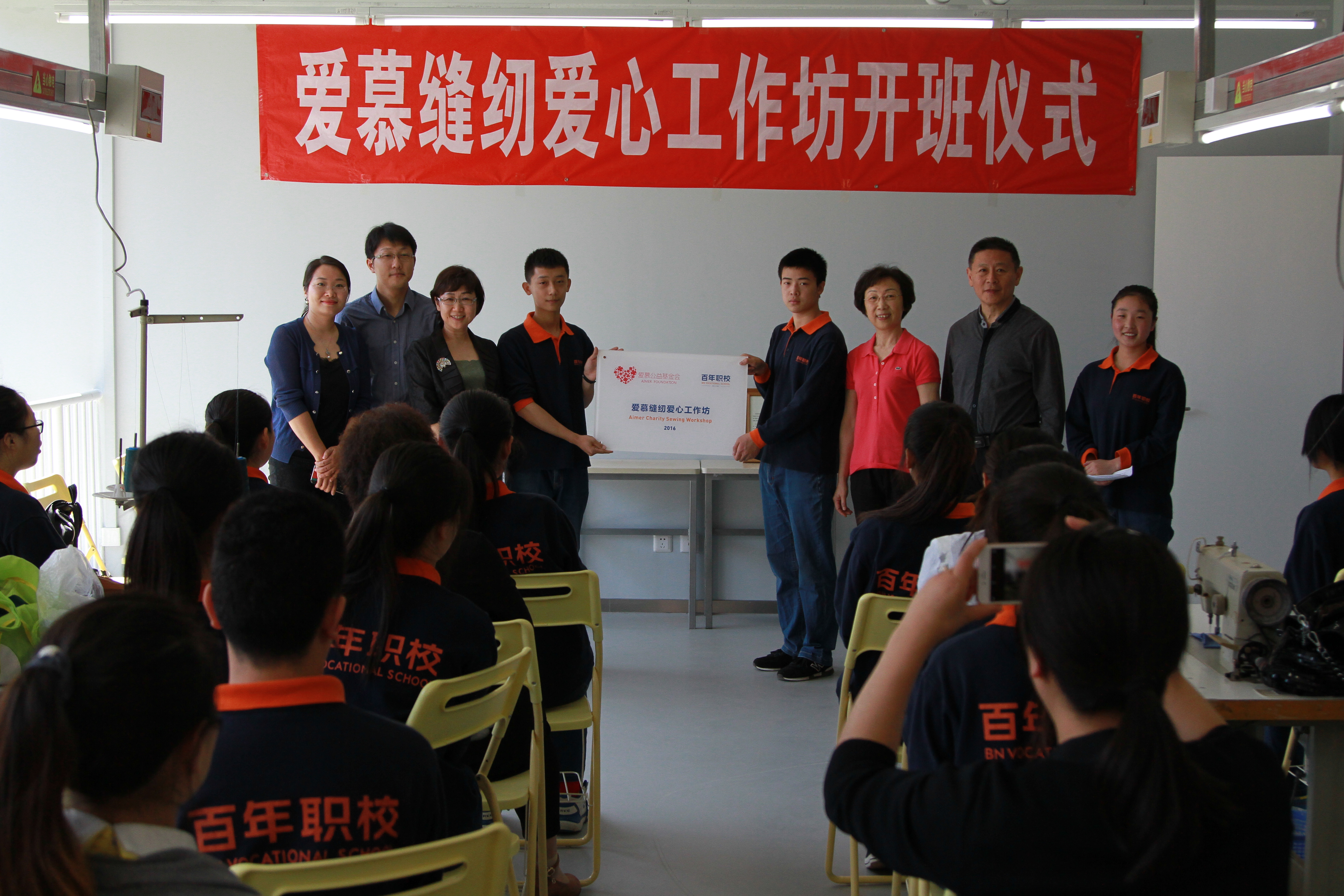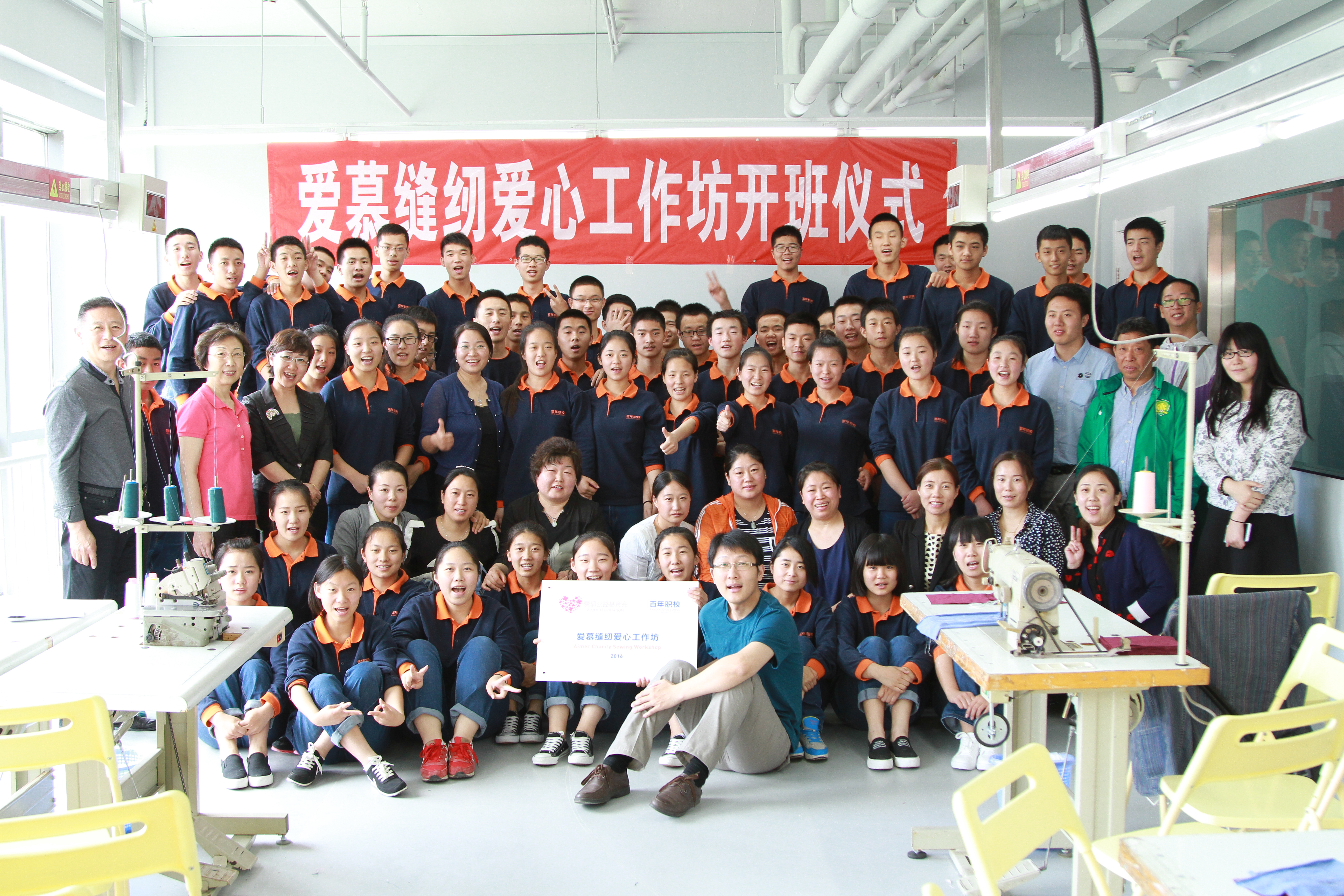 2016年5月15日,由愛慕公益基金會捐贈的百年職校“愛慕縫紉愛心工作坊”正式開班