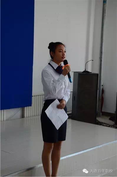 典禮在莊嚴(yán)的國歌聲中開始,在大屏幕前師生們一起回顧了2014級畢業(yè)生在校生活的點點滴滴,很多同學(xué)都留下了感動的淚水。之后百年職校的教師代表、志愿者代表、資助者代表、實習(xí)單位代表為畢業(yè)生頒發(fā)了畢業(yè)證書,服務(wù)班李連瑩同學(xué)代表畢業(yè)生發(fā)言,感謝所有老師和資助者的無私奉獻。連續(xù)五年擔(dān)任服務(wù)課程主任的孫小兵老師代表所有百年職校的老師給畢業(yè)生們送去了祝福,也為他們以后的人生路加油鼓勁。百年職校的志愿者代表大連文聯(lián)何明洲主席表達了對百年職校事業(yè)的認可和對百年職校學(xué)生的贊揚,并勉勵大家珍惜現(xiàn)在生活和學(xué)習(xí)的條件,努力成為社會的擔(dān)當(dāng)。