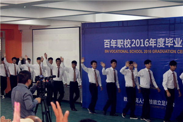 2016年9月26日上午10點30分銀川百年職校2016年度畢業(yè)典禮在學校愛心大講堂隆重召開,出席本次活動的有寧夏青少年發(fā)展基金會劉升祥秘書長、寧夏大學團委王彥庚書記、銀川職業(yè)技術學院翟新榮副院長、銀川百年職校全體任課教師、銀川各大酒店總經理及人力資源總監(jiān)、印尼青年代表團,媒體及2014級畢業(yè)生、2015級在校生等近300人應邀參加典禮。