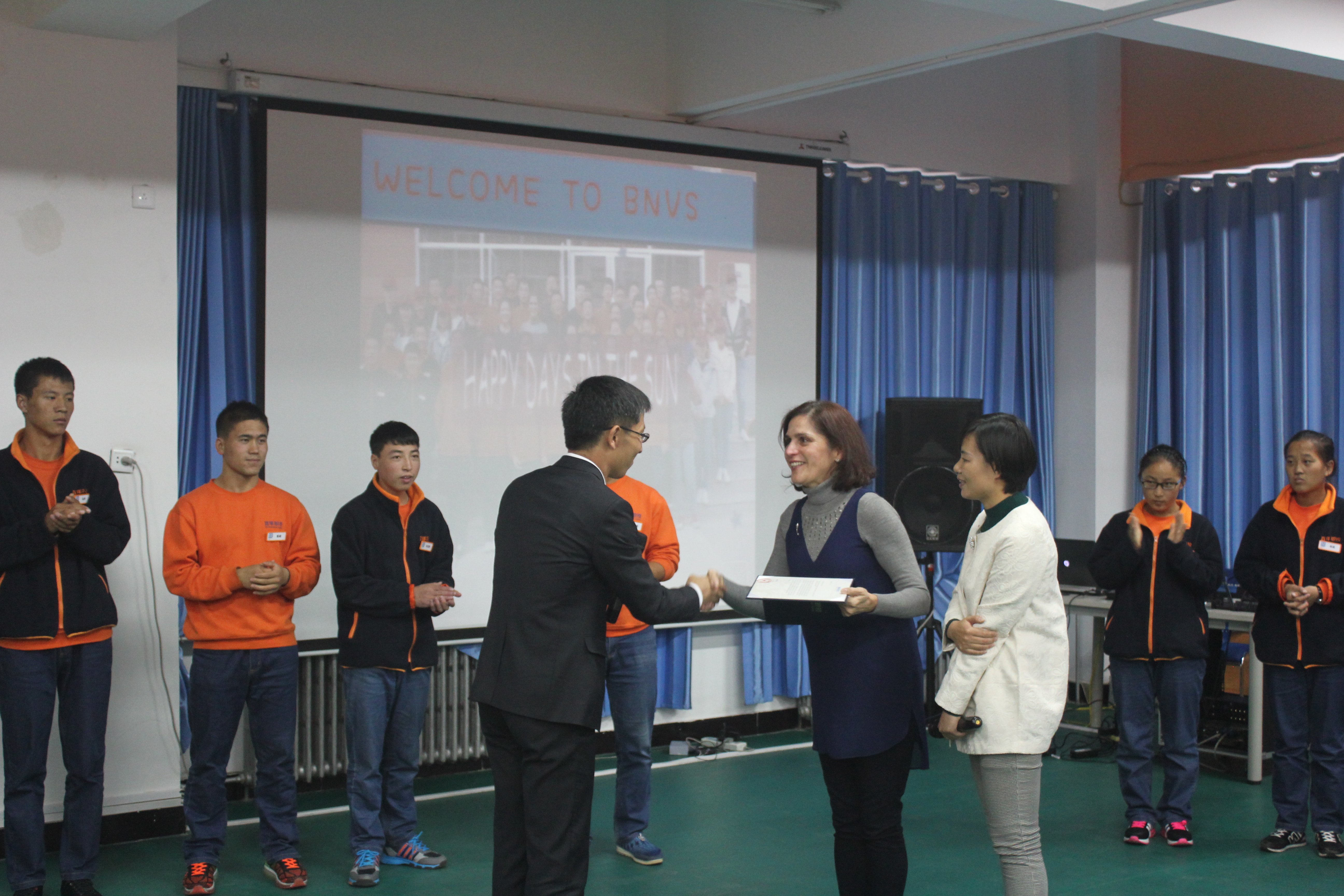 銀川百年職校校長為Betsy老師頒發(fā)志愿者證書