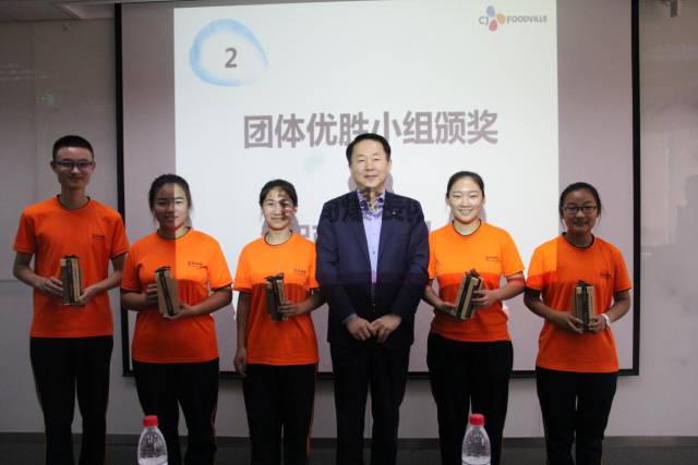 CJ集團(tuán)中國(guó)區(qū)副總裁金樟勛為團(tuán)體優(yōu)勝小組頒獎(jiǎng)
