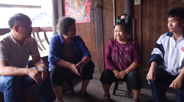 我們來到王時(shí)春家的時(shí)候,看到這是一個(gè)典型的苗族家庭,他的媽媽穿著簡樸的民族服裝和頭飾,非常熱情。