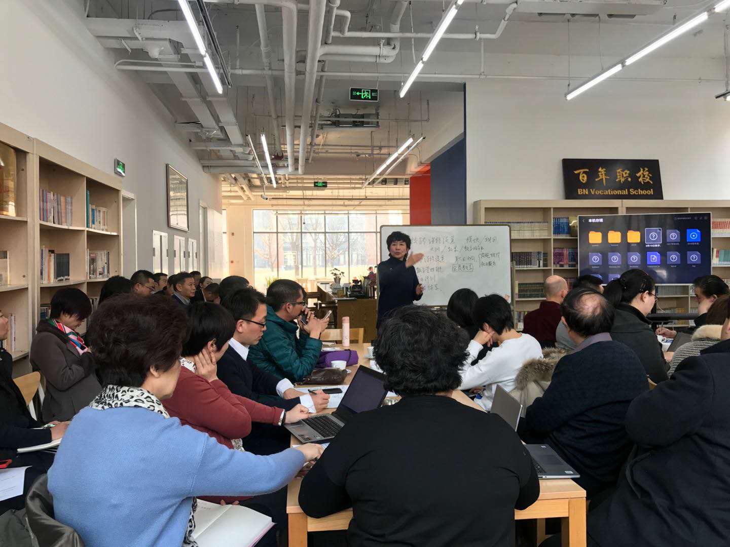 新學(xué)期,北京百年職校計(jì)劃開設(shè)人生技能和職業(yè)技能課程共48門。教務(wù)主任趙磊老師報(bào)告了北京學(xué)校在多學(xué)科中實(shí)施分層教學(xué),為每名學(xué)生訂制個(gè)性化學(xué)習(xí)計(jì)劃的教學(xué)工作方案以及學(xué)生選課的具體情況。