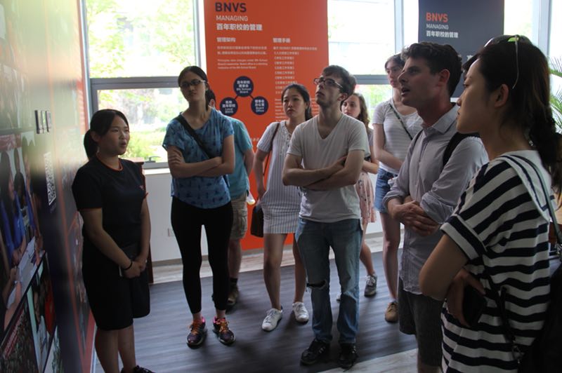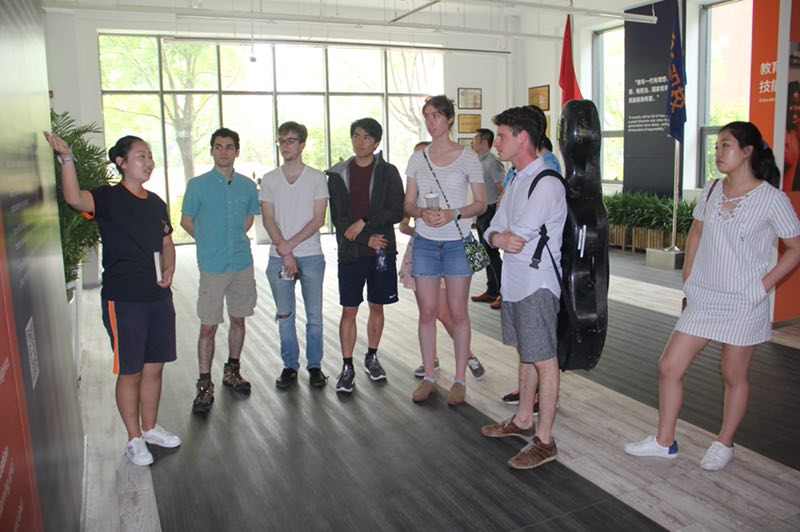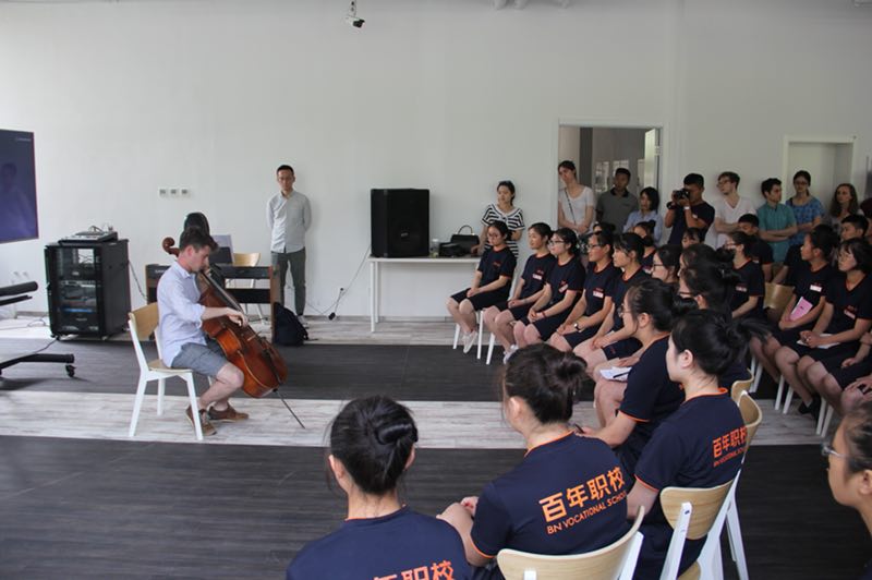 2018年5月16日,在百年職校長(zhǎng)期資助方高翎基金會(huì)的引薦下,耶魯大學(xué)Low strung大提琴樂團(tuán)來到百年職校參觀,百年學(xué)生宣講團(tuán)向耶魯大學(xué)的同學(xué)們對(duì)學(xué)校進(jìn)行了詳細(xì)地介紹。