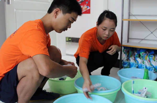 走進百年職校大門,就看到新生穿著百年職校的校服在樓道里忙著自己的事情,因為剛開學(xué),學(xué)校事情比較多。于是,我就幫助老師給新生發(fā)放生活用品,教新生怎樣疊被子。看到新生都很懂事,我的心里感到非常高興。