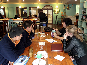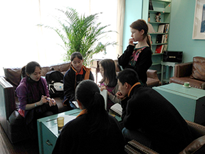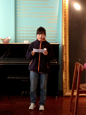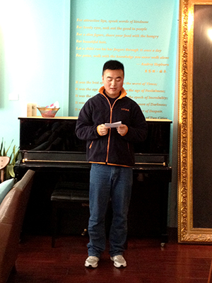 2013年4月13日星期六,北京百年職校的 12 名同學參加了本學期最后一次哈羅國際學校的詩社活動,此次活動形式為詩歌朗誦會,地點在幸福咖啡館,大家在輕松歡快的氛圍中依次上臺朗誦了自己最滿意的詩歌作品。我們的同學為了此次朗誦會在課下刻苦練習,克服了羞怯不自信等重重困難,表現(xiàn)得落落大方,可圈可點,贏得了哈羅學校師生、以及咖啡館素不相識的顧客的陣陣掌聲。