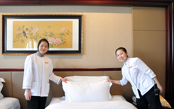 【記者團(tuán)彭潔鈺報(bào)道】4月15日,我開始跟酒店的師傅實(shí)操學(xué)習(xí)整理客房的工作了。第一次進(jìn)行政套房、豪華大床房等不同類型的客房進(jìn)行實(shí)踐操作。我遇到一個(gè)棘手的問題就是不會(huì)套被套,總會(huì)把寬和長(zhǎng)的方向弄混淆,急得我滿頭是汗。沒想到套被子這樣的小事也能成為我工作中的攔路虎,看來我們不能小覷自己的工作啊!一旁工作經(jīng)驗(yàn)豐富的師傅早就發(fā)現(xiàn)我的苦惱了,指著被套布料上的橫豎紋理格子對(duì)我說:“這個(gè)問題很好解決,記住小床寬是5個(gè)格子,長(zhǎng)是6格;大床寬6格,長(zhǎng)7格;加大床寬10格,長(zhǎng)11格。”師傅說完就讓我跟她再去不同的房間試試。我心想:這么簡(jiǎn)單?不可能吧?但是實(shí)踐是檢驗(yàn)真理的唯一標(biāo)準(zhǔn),我按照師傅的指點(diǎn)再去套被套,沒有一次不管用的。