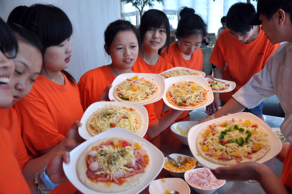 11點(diǎn)時,酒店的工作人員把媽媽們帶去看視頻,那是前兩天酒店的工作人員專程到學(xué)校為我們錄制的,是每位同學(xué)對他*的祝福。與此同時,我們十位同學(xué)來到西餐廳的食物臺前,正在親手為媽媽制作Pizza。雖然自助餐上酒店為大家準(zhǔn)備了各式各樣的美食,但是這種美食是世界上獨(dú)一無二的,一定會給媽媽帶來意想不到的驚喜! 當(dāng)媽媽看完視頻,我們每個人滿臉喜悅地把自己制作的Pizza端到媽媽面前請她品嘗。這時,我發(fā)現(xiàn)他*的眼里閃動著熱淚,我想媽媽肯定感到很幸福。