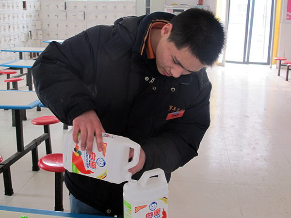 環(huán)境部學(xué)生干部在檢查衛(wèi)生