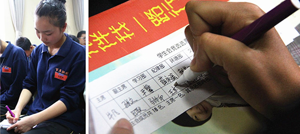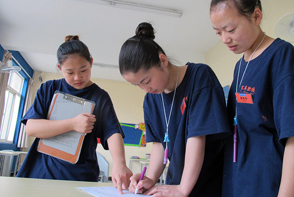 上一任環(huán)境部副部長(zhǎng)王亞雪指導(dǎo)新學(xué)生干部做相關(guān)表格的填寫(xiě)
