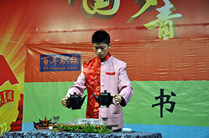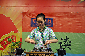 服務(wù)班的張瓊瑤和黃乙峰給大家展示精彩的茶藝——雙泡普洱。