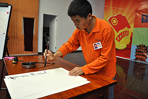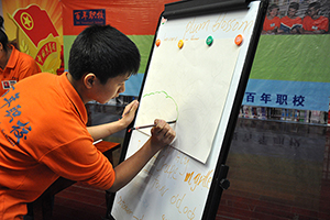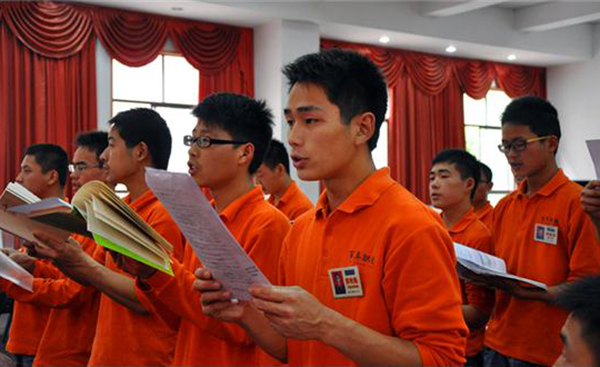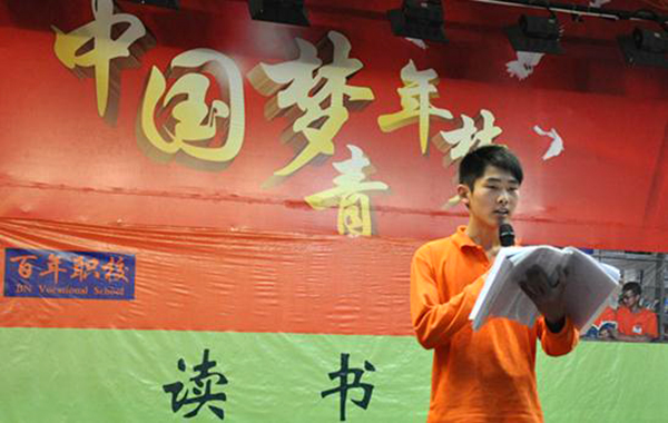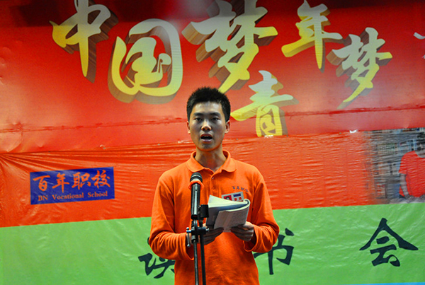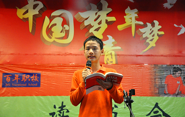 電工班的才子梅正亮正在表演關(guān)于《三字經(jīng)》的搞笑評(píng)書(shū),讓同學(xué)們輕松一會(huì)兒。
