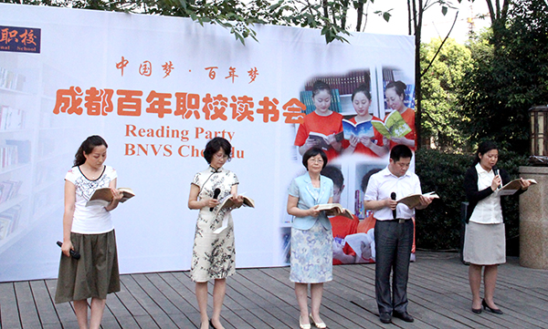 男:歡迎大家參與成都百年職校愛心書房第四屆讀書交流分享活動(dòng)。Welcome to our 4th Reading party.
