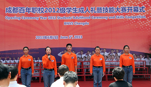 劉會英書記在成都百年職校成人禮暨技能大賽上講話
