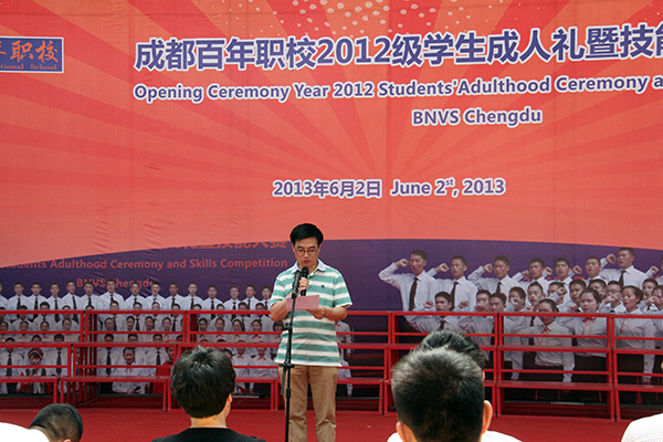 昨天剛剛度過兒童節(jié),今天你們又迎來了一個真正屬于自己的節(jié)日——成人禮儀式。告別無憂無慮的快樂少年,你們將開始人生最為寶貴的多姿多彩的青春時代。在這樣一個特殊的時刻,我代表成都百年的志愿者老師們,向你們表示衷心的祝福和熱烈的祝賀!祝賀你們在人生的關鍵時刻,幸運地走進了百年職校!祝賀你們即將踏入社會,作為一個成人,作為一個公民,參與家庭和社會活動的許多事務,行使應有的權利,承擔應盡的責任!