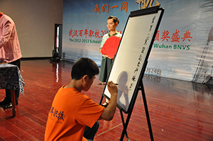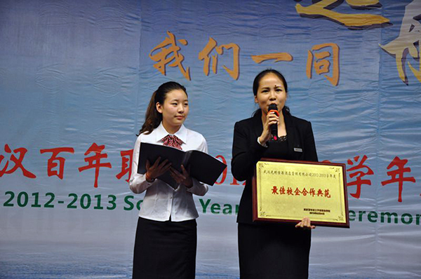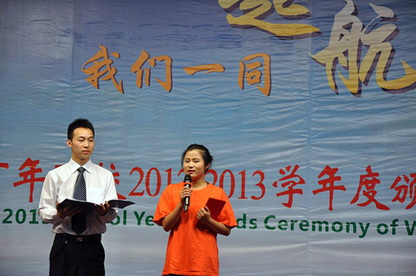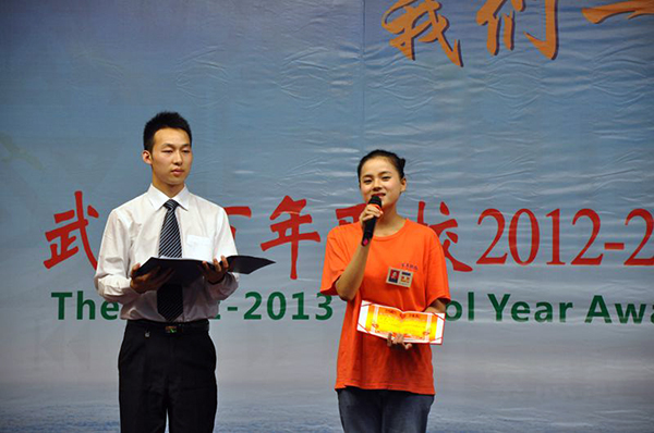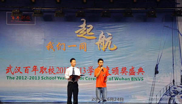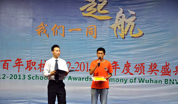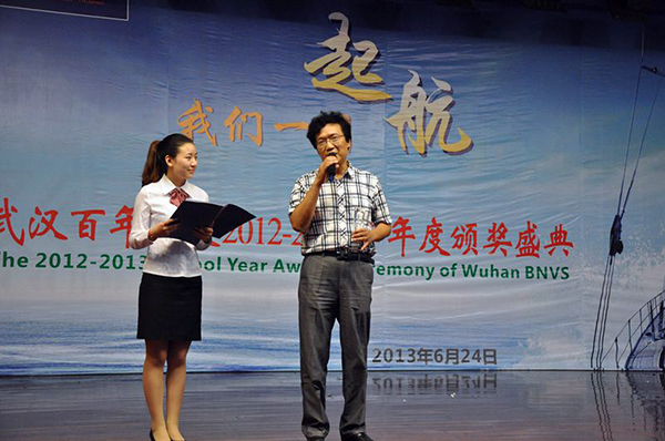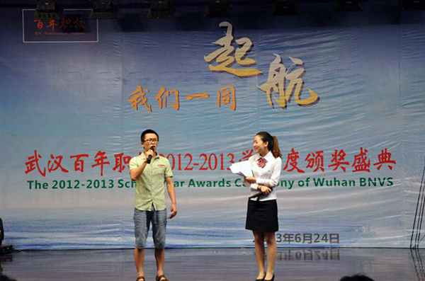 郝娜:Now let’s start 2012-2013 school year awards ceremony of Wuhan BNVS!
