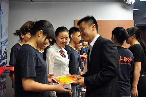 嚴(yán)莉總監(jiān):與我們酒店合作的學(xué)校很多,但是百年職校真是與眾不同。在合作中我們深切感受到學(xué)校的愛和關(guān)心,我們也堅信在愛和關(guān)心中成長的孩子們對于社會一定付出更多的愛和關(guān)心。希望百年職校越辦越好,希望即將走向?qū)嵙?xí)崗位的孩子們能把在學(xué)校感受到的愛和關(guān)心帶到社會上去幫助更多的人,祝你們有個美好的未來!謝謝!