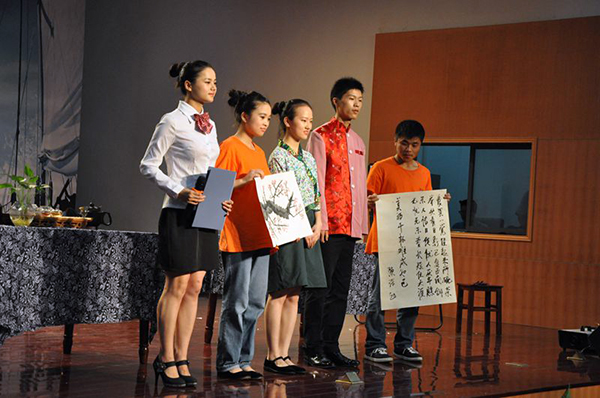 肖名毅:百年職校的教育特色之一是理論與實操的結(jié)合、專業(yè)和特長的結(jié)合,下面由服務(wù)班黃乙峰、張瓊瑤等同學(xué)匯報茶藝課的學(xué)習(xí)成效。