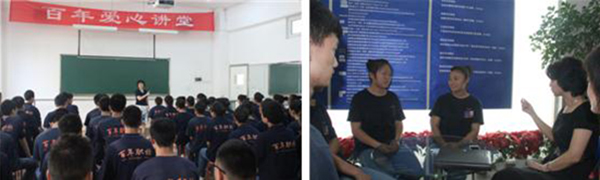左圖為2013年6月28日上午,陳校長為2012級學(xué)生帶來實(shí)習(xí)就業(yè)指導(dǎo)講座現(xiàn)場。右圖為張校長和班主任老師對各班同學(xué)分別進(jìn)行實(shí)習(xí)前個別談話工作,強(qiáng)調(diào)了在實(shí)習(xí)崗位上應(yīng)具備責(zé)任感,多從服從企業(yè)管理的角度,思考和處理問題,不要把個人的小情緒帶進(jìn)工作中。