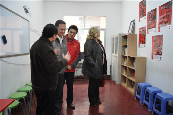 在我們的身邊,總會有一些人,喜歡幫助他人,他們視這種行為為己任。我們學(xué)校就來了這樣一群人,一群大哥哥大姐姐,搬搬抬抬,秘密的進(jìn)行著一些活動。他們又是安裝柜子,又是貼海報,他們到底在干嘛?原來,他們在布置捐贈給我校的英語角,以后我們有機會和他們進(jìn)行口語交流了。