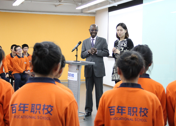 2016年4月19日,上午10時(shí),安哥拉駐華大使João Garcia Bires先生、安哥拉駐華公使Sérgio Neto先生、一等秘書Teresa Guilhermina女士、新聞官Eduardo André先生和中信建設(shè)有限責(zé)任公司副總經(jīng)理馬傳福先生一行,來到了北京百年職校參觀訪問。