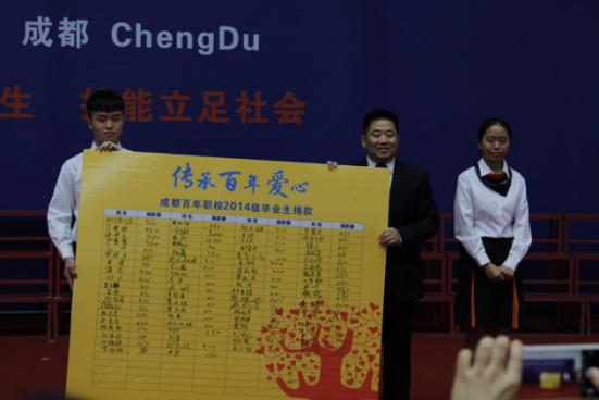成都百年職校從建立之初到今天,得到了共青團(tuán)四川省委和四川省青少年發(fā)展基金會(huì)的大力支持,在他們的關(guān)心和指導(dǎo)下百年職校一步一步地成長起來。四川省青少年發(fā)展基金會(huì)秘書長蔣英女士親臨現(xiàn)場(chǎng),對(duì)我們說:“ 成都百年職校的同學(xué)們大部分來自我省邊遠(yuǎn)山區(qū)的貧困家庭,比同齡人更多的品嘗了生活的艱辛,但苦難是人生最好的學(xué)校。希望同學(xué)們堅(jiān)定理想、自強(qiáng)不息,通過不懈努力來改變個(gè)人命運(yùn)和家庭貧困面貌。同學(xué)們走向社會(huì)以后,仍需堅(jiān)持學(xué)習(xí),不斷充實(shí)和完善自我,用自己誠實(shí)、勤奮、樸實(shí)的工作生活作風(fēng)來贏得社會(huì)的尊重,這樣才能適應(yīng)未來工作環(huán)境變化的需要,才能真正成為對(duì)社會(huì)有用的人。”